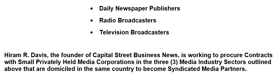 Capital Street Business News – Three (3) Syndicated Media Partner Industry Sectors