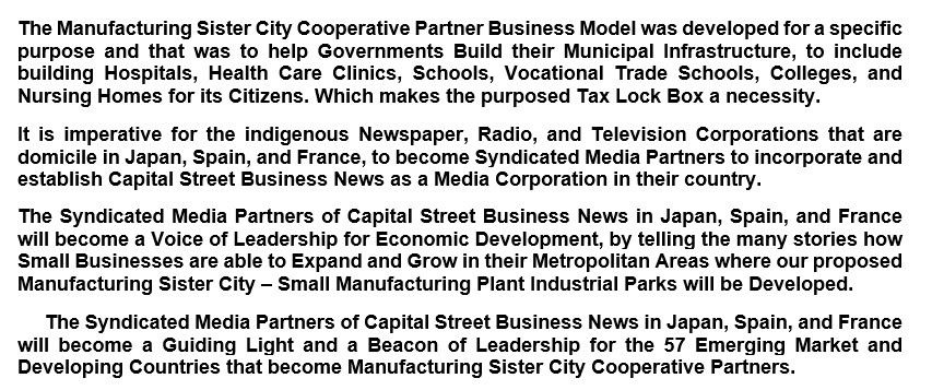 Capital Street Business News – Three (3) Foreign Syndicated Media Partners Bureaus