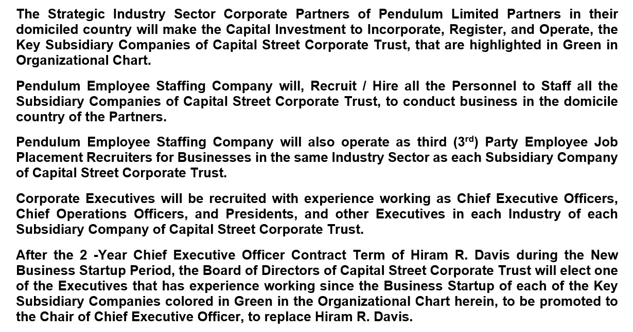 Hiram R. Davis Founder – 2 Year Chief Executive Officer Contract for Subsidiary Companies